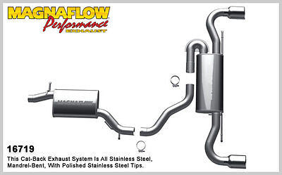 MagnaFlow Direct-Fit Cat-Back Exhaust system built to fit behind the factory catalytic converters.