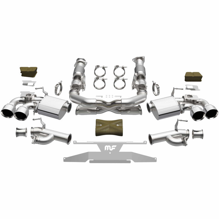 The MagnaFlow xMOD Series Cat-Back Performance Exhaust System with polished finish #19578 for the 2020-2024 Chevrolet Corvette C8 offers the modularity of MagnaFlow’s xMOD series in a compact package designed for high performance and durability.